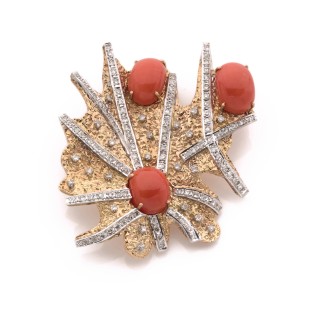 "Leaf" clip in openwork 18k yellow gold (750‰), the edge made ou