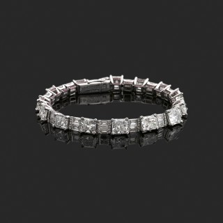 DE GRISIGONO Bracelet in 18k grey gold (750‰) set with radiant-cut, baguette-cut and round diamonds (16,2 cts in total) and small rubie