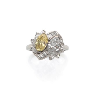 ƒƒ SHREVE, CRUMP & LOW Ring "Toi et moi" design in platinum, adorned with two marquise-shaped diamonds