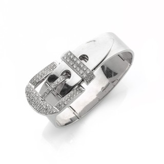 Articulated "belt" bracelet in 18k grey gold (750‰), the buckle paved with round diamonds Length : 19,5 cm