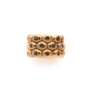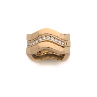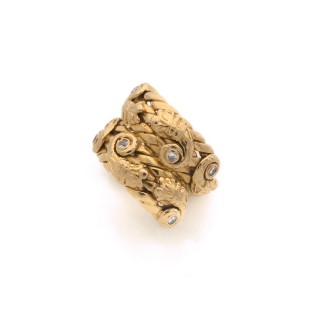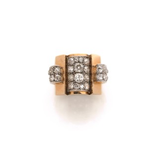 "Tank" ring in 18k yellow gold (750‰) with rolls, paved with circular-cut diamonds Production of the 1940s