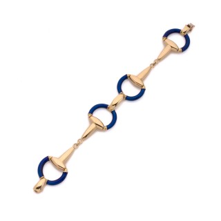 UNO-A-ERRE, Milan "Etriers" bracelet in 18k yellow gold (750‰) partially blue enameled