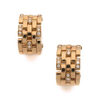 CARTIER, Paris Pair of clip earrings in18k yellow gold (750‰) with panthère brick links, some of them adorned with round diamonds