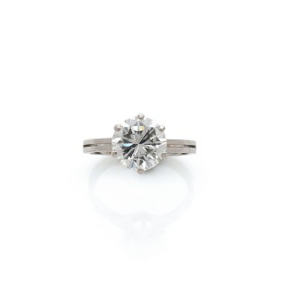 Platinum (850‰) ring adorned with a round diamond mounted in a solitaire Weight of the diamond : approximately 2 carats (F/G)