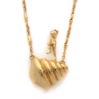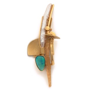 Modernist pendant/brooch in 18k yellow gold (750‰), opal cabocho