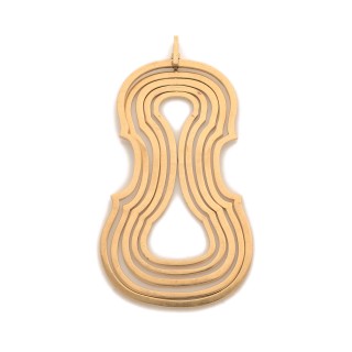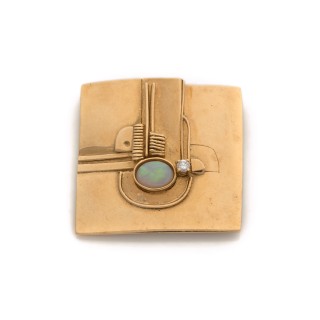 Modernist pendant/brooch in 18k yellow gold (750‰), opal cabochon and a small diamond Bears a signature Laloux