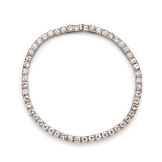 Line bracelet adorned with 52 circular-cut round diamonds Setting in platinum with a security chain