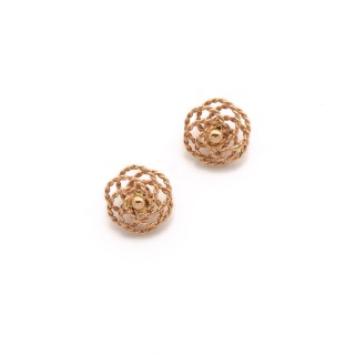 Pair of buttons in 18k yellow gold (750‰) filigreed with a rose pattern Weight : 4,4 g