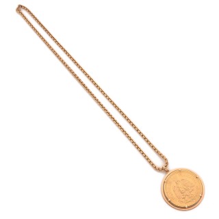 Medal in 18k yellow gold (750‰) adorned with a coin of 50 Pesos Chain in 18k yellow gold (750‰) with cable-links