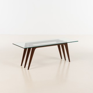 Gio Ponti (1891-1979) , attribué à Table basse Noyer et verr ...