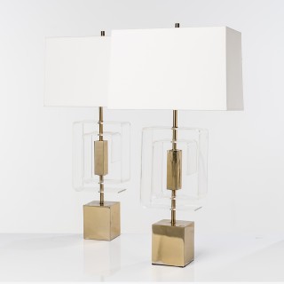 Roberto Rida (né en 1943) Lampe de table Laiton et verre D ...