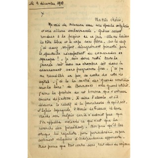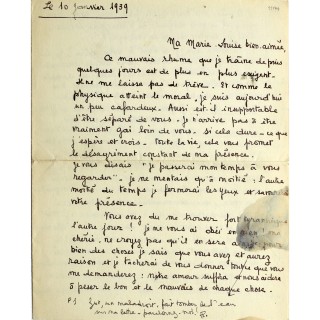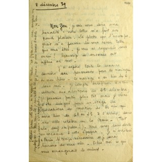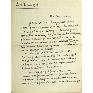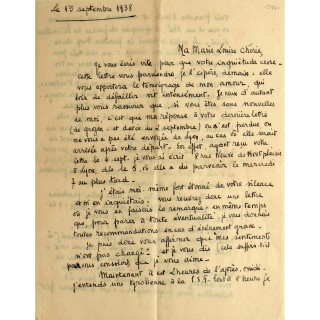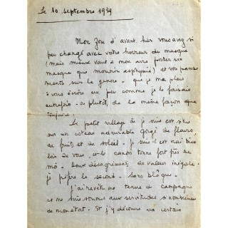MITTERRAND, François Lettre autographe signée à Marie-Louise Terrasse, dite Catherine Langeais [Jarnac], 9 août 1938