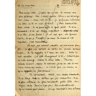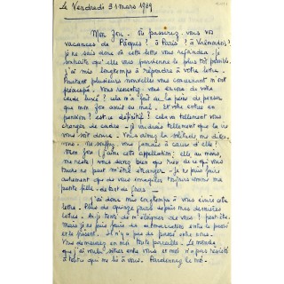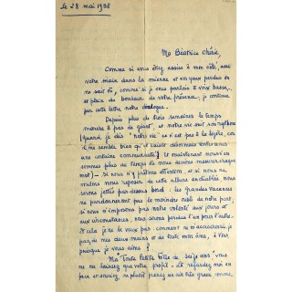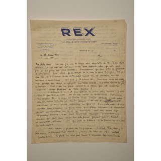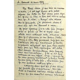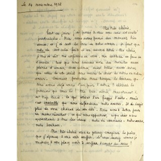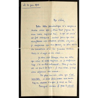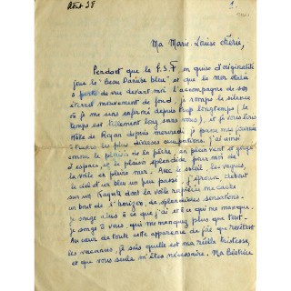 MITTERRAND, François Lettre autographe signée à Marie-Louise Terrasse, dite Catherine Langeais [Paris, 104 rue de Vaugirard], 28 mai 1938