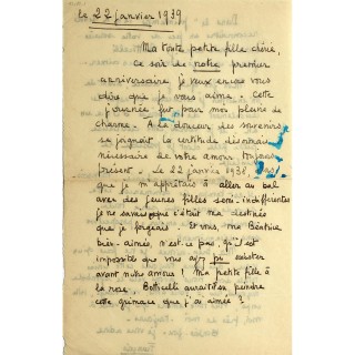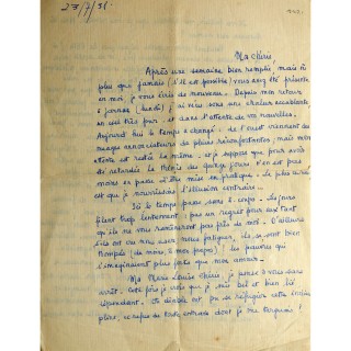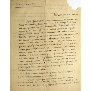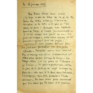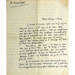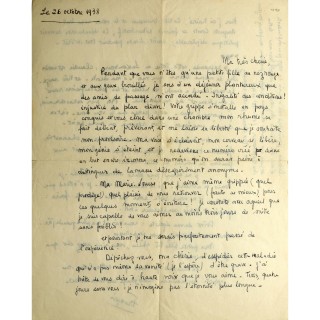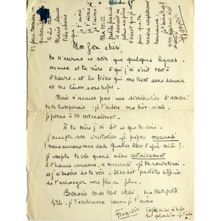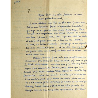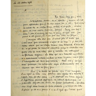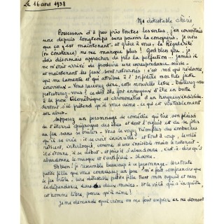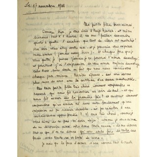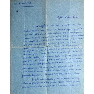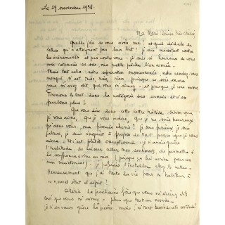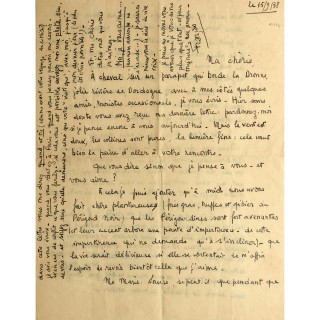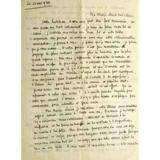 MITTERRAND, François Lettre autographe signée à Marie-Louise Terrasse, dite Catherine Langeais [Jarnac], 23 juillet 1938