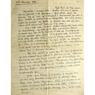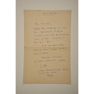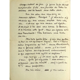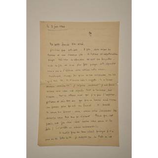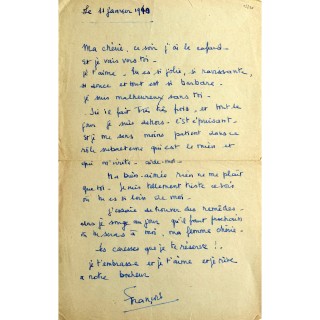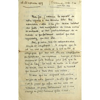 MITTERRAND, François Lettre autographe signée à Marie-Louise Terrasse, dite Catherine Langeais [Paris, 104 rue de Vaugirard], 3-4 ju...