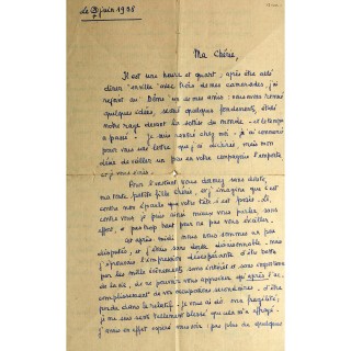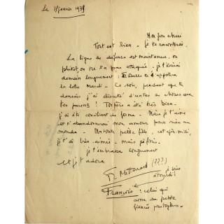 MITTERRAND, François Lettre autographe signée à Marie-Louise Terrasse, dite Catherine Langeais Jarnac, 13 août 1938