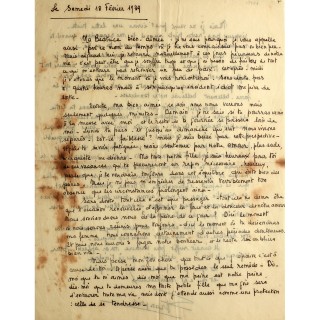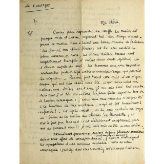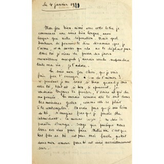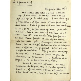 MITTERRAND, François Lettre autographe signée à Marie-Louise Terrasse, dite Catherine Langeais [Jarnac], 6 août 1938