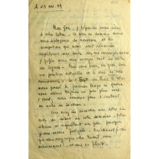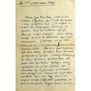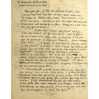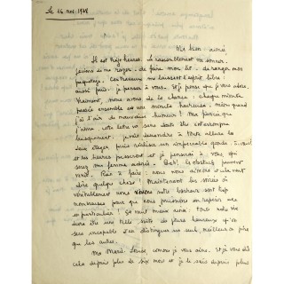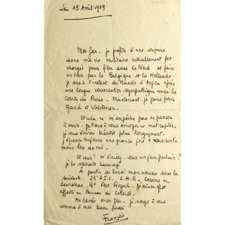 MITTERRAND, François Lettre autographe signée à Marie-Louise Terrasse, dite Catherine Langeais [Meuse], 31 mai 1940