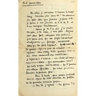 MITTERRAND, François Lettre autographe signée à Marie-Louise Terrasse, dite Catherine Langeais [Meuse], 3 juin 1940