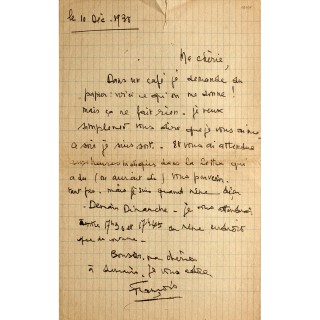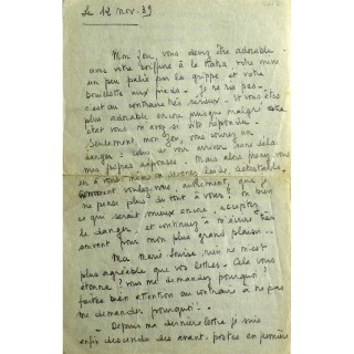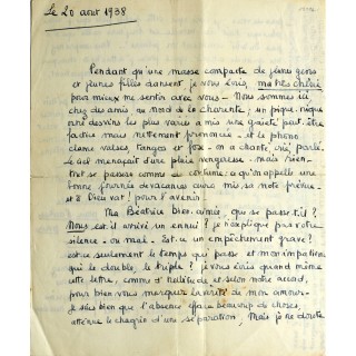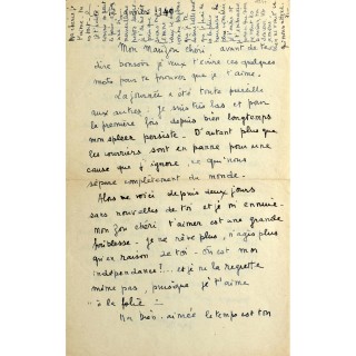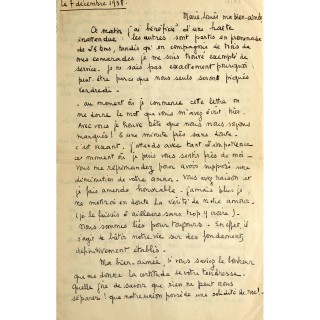 MITTERRAND, François Lettre autographe signée à Marie-Louise Terrasse, dite Catherine Langeais [Paris], 16 août 1938