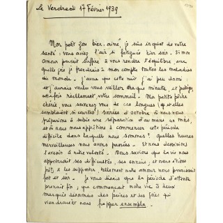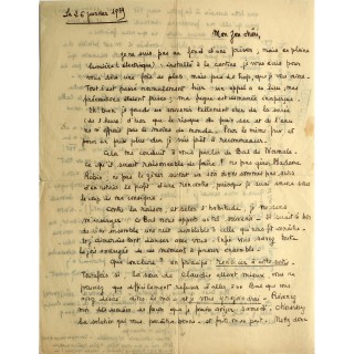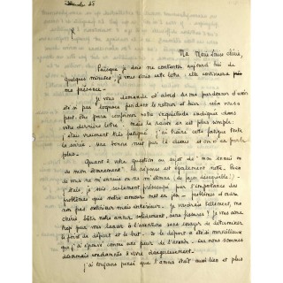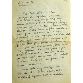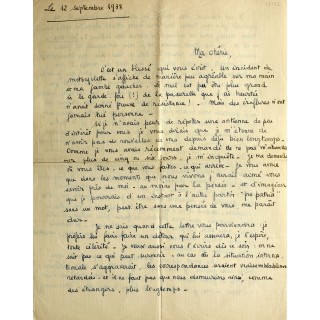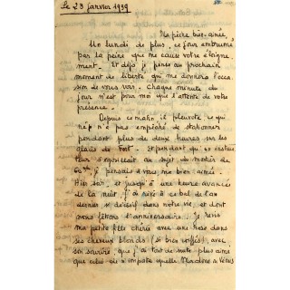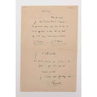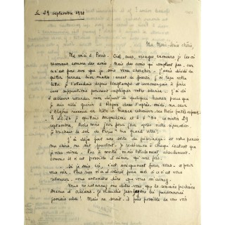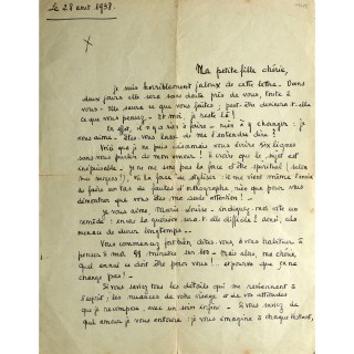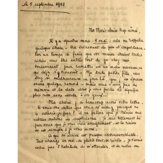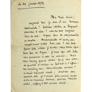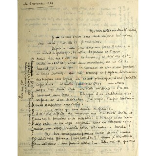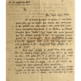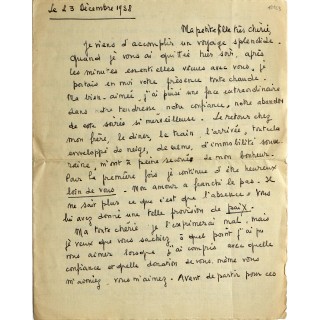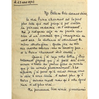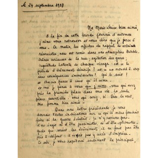 MITTERRAND, François Lettre autographe signée à Marie-Louise Terrasse, dite Catherine Langeais [Paris], 23 août 1938