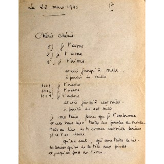 MITTERRAND, François Poème autographe signé à Marie-Louise Terrasse, dite Catherine Langeais [1939]