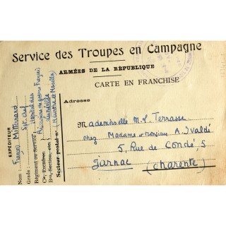 MITTERRAND, François Carte autographe signée à Marie-Louise Terrasse, dite Catherine Langeais [Meuse], 8 juin 1940