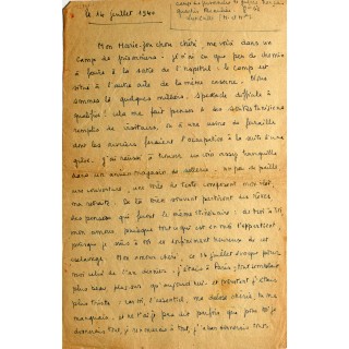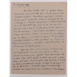 MITTERRAND, François Lettre autographe signée à Marie-Louise Terrasse, dite Catherine Langeais Lunéville, 15 juillet 1940
