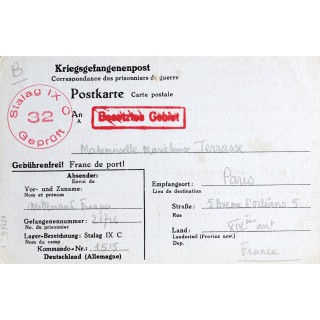MITTERRAND, François Carte autographe à Marie-Louise Terrasse, dite Catherine Langeais [Thuringe], Stalag IX C, 5 janvier 1941
