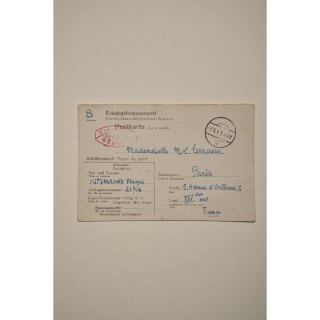 MITTERRAND, François Carte autographe signée à Marie-Louise Terrasse, dite Catherine Langeais [Trutzhain, Hesse], Stalag IX A, 30 av...