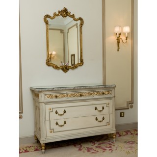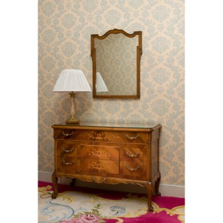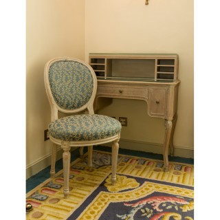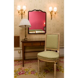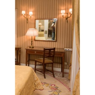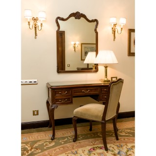 Writing desk 75 x 100 x 75, lampe H 52 cm, mirror 76 x 69 cm, Louis XV style chair 90 x 45 x 45 cm