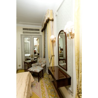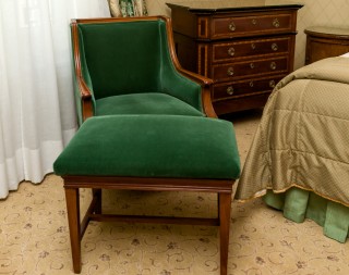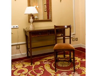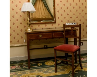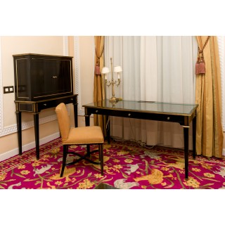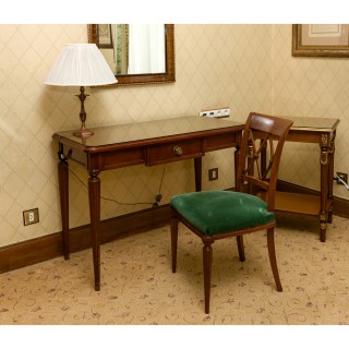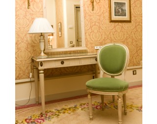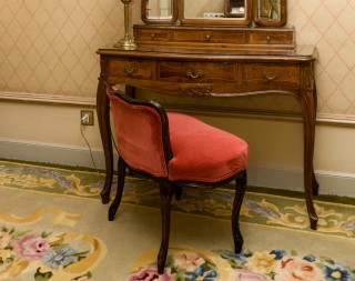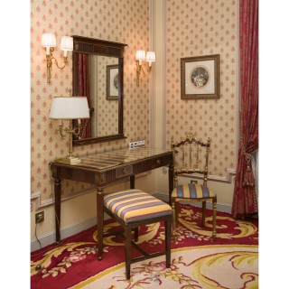 Writing table, mirror, chair, lamp, armchair and stool