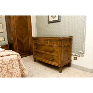 Veneered wood chest of four drawers 87 x 97 x 56 cm, armchair 85 x 65 x 70 cm, bench seat 50 x 65 x 45 cm