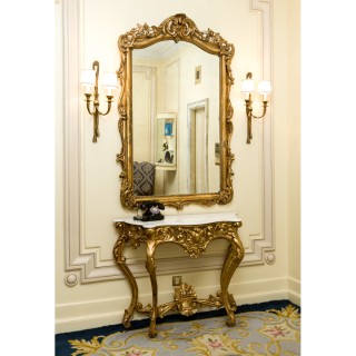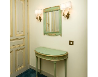 Consola, mirror, armchair, stool and rectangular table