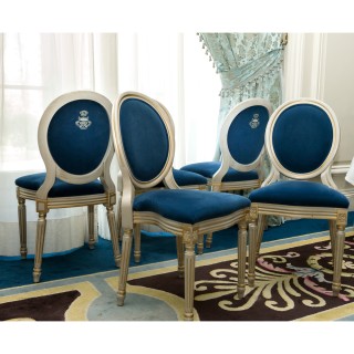 Twelve medallion chairs in silver wood and upholstered in blue v