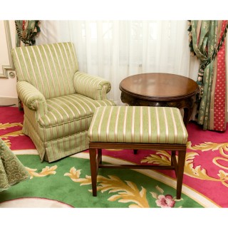 Armchair 77 x 70 x 75 cm, round side table H 68 x D 65, stool 50
