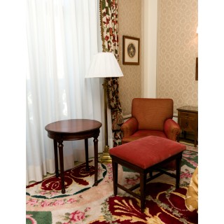 Armchair, stool, round side table and rectangular table