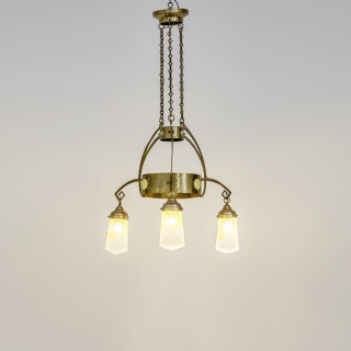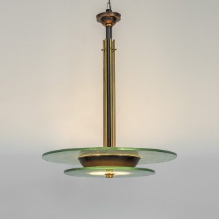 Emile Jacot (1887-1960) Lustre moderniste Verre et cuivre ...