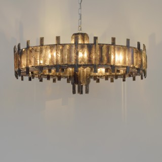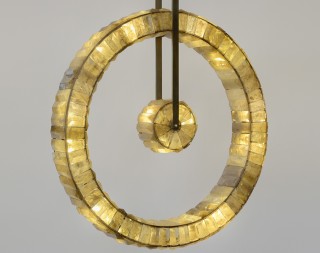 Régis Mathieu Orbite Lustre Bronze argenté et cristal de r ...