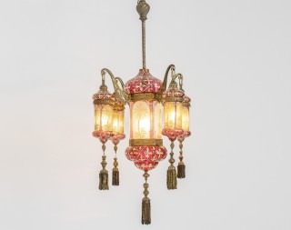 Travail français Turquerie Lanterne Verre rouge, fil de mé ...