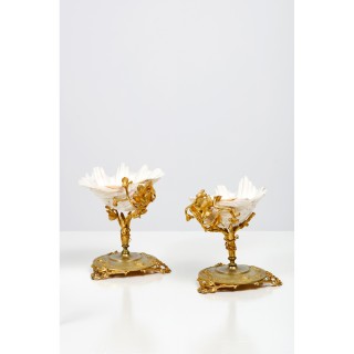 Coupe en onyx reposant sur un pièdouche en métal à décor de rinc ...