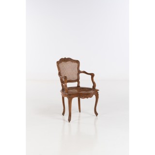 Light grey lacquered wood flat-back armchair with carved decoration of flowers and pomegranates Louis XV period
