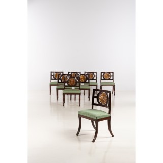 Eight crystal liqueur glasses with engraved decoration of the gr ...