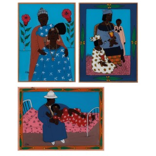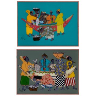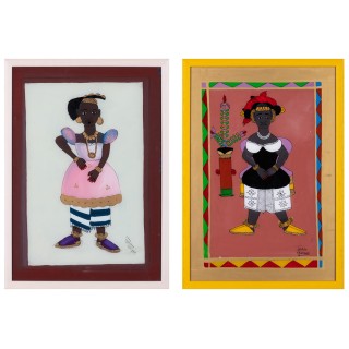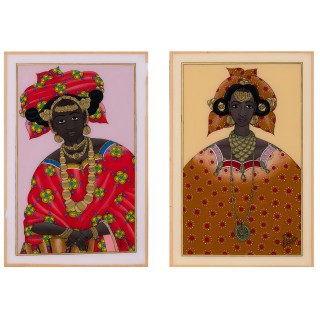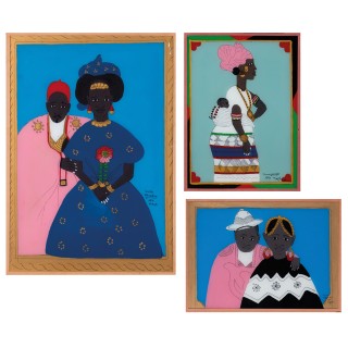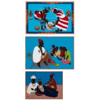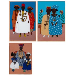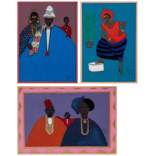 Lot of three paintings mounted under glass I. Gora Mbengue (193 ...