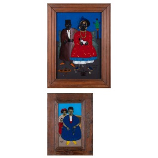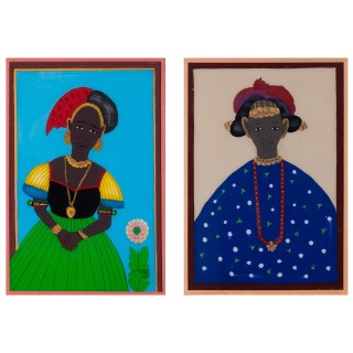 Lot de deux peintures fixées sous verre