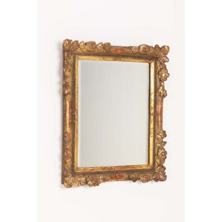 Moulded, carved and gilded wooden mirror decorated with marguerites on a squared background 18th century