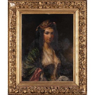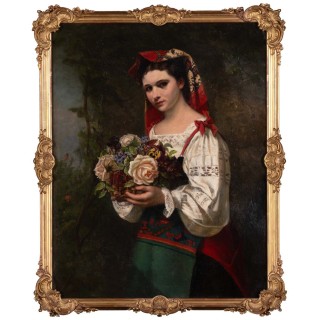 Adolphe Etienne PIOT (1850-1910) Portrait of Young Girl with Flower Basket