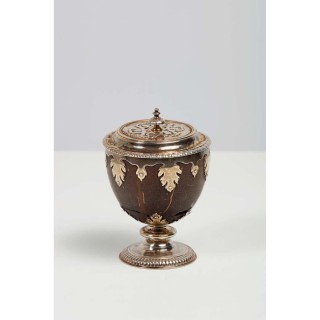 Covered coconut box, mounted in silver-plated metal, engraved "ST MH" under the lid English work