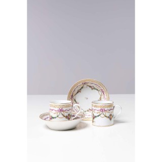 In the taste of Meissen Pair of litron cups and their saucers in porcelain decorated with garlands of flowers, bows of ribbons and gild