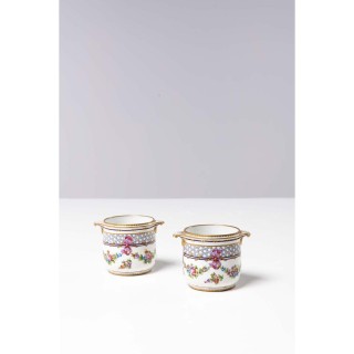 In the taste of Sèvres Pair of porcelain creamers decorated with garlands of flowers and semis